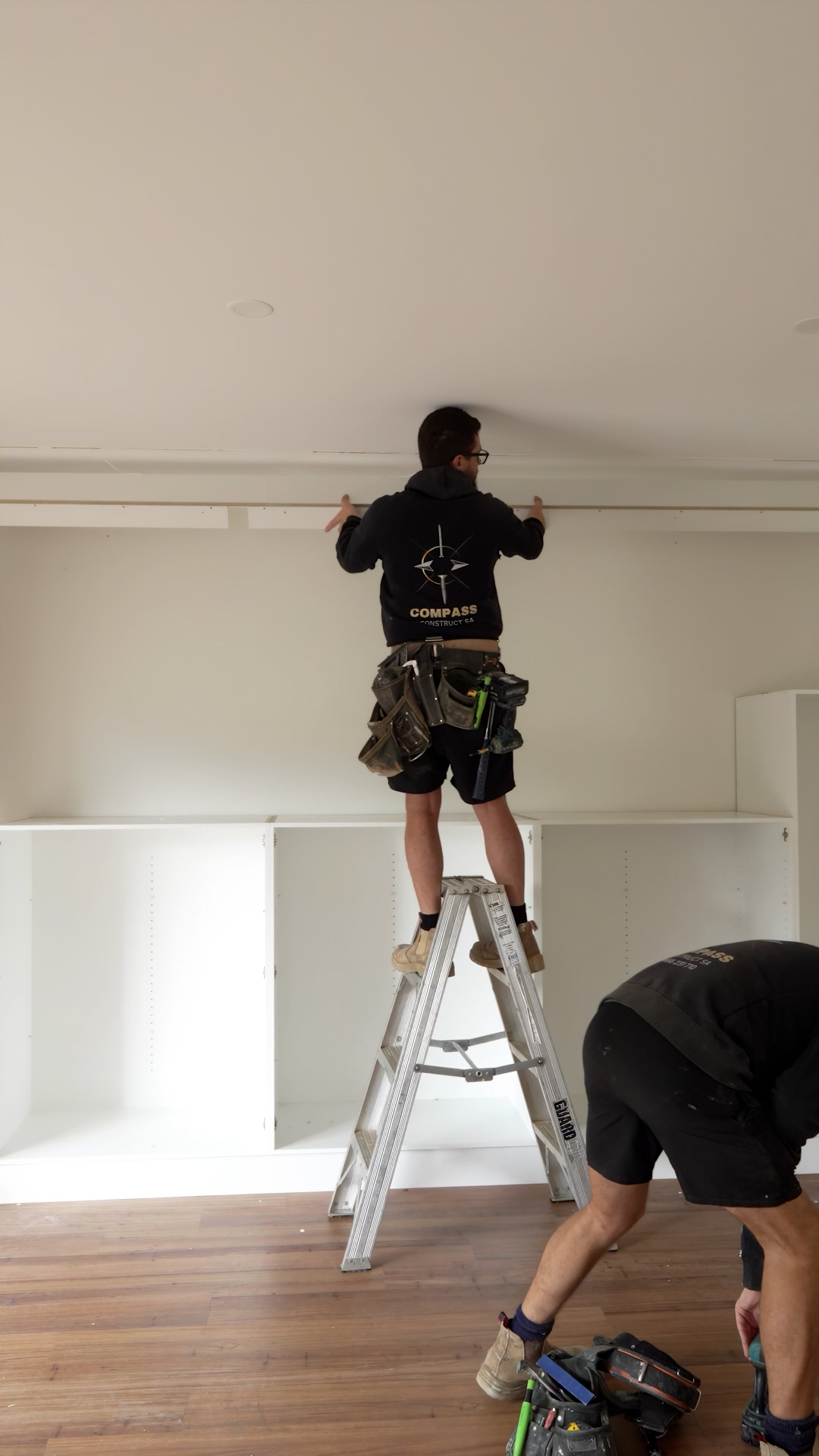 Stage Two has seen the roof installed, complete with integrated solar panels, while work continues downstairs on internal finishes. The team is now finalising drywall installation and preparing for new electrical power points and fit-offs.